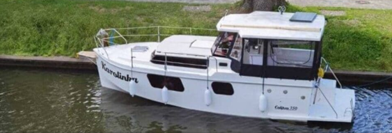 Houseboat – łódź spacerowa Calipso 750 o mocy 30 KM. Silnik zaburtowy, 2020 rok, nie wymaga posiadania uprawnień. Długość 7,5 m, szerokość 2,8 m. Posiada 3 sypialnie, TV, radio z wejściem na USB, solar, ciepłą i zimną wodę, oddzielną kabinę z wc i prysznicem. Na wyposażeniu są także: echo sonda, ster strumieniowy, kuchnia, lodówka itp. Bardzo wygodna, przestronna jednostka
