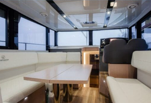 Futura 45 Seamaster to najnowsza oferta znanej i renomowanej stoczni Cobra Yachts. Premiera miała miejsce w 2021 roku! Jest to jednostka o najwyższym standardzie mieszkalnym. Jej czarter zaspokoi oczekiwania najbardziej wymagających motorowodniaków. Doskonałe własności nautyczne zapewnia odpowiednia konstrukcja kadłuba. Futura 45 Seamaster wyposażona jest w silnik stacjonarny Yanmar 80 KM oraz 2 stery strumieniowe: dziobowy i rufowy. Umożliwia to obracanie jachtu podczas manewrów portowych niemal w miejscu. Flybridge zapewnia sternikowi pełny widok na akwen i ułatwia sterowanie, zwłaszcza w ciasnych miejscach. Z kolei głębinowa płetwa sterowa daje dobrą stateczność kursową.